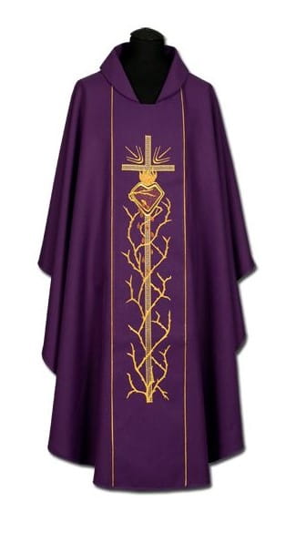 Casula con una banda ricamata. Composizione tessuto : 54% lana e 46% poliestere. Spedita con la stola. Lunghezza 125 cm