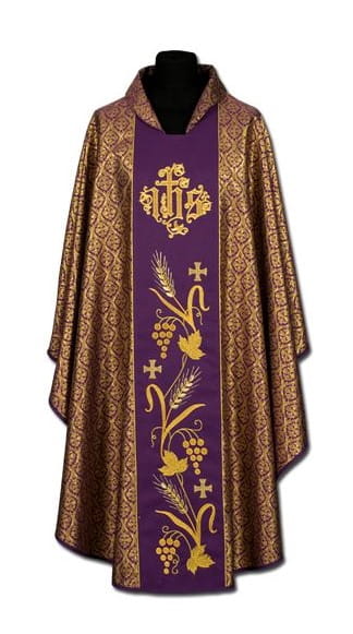 Casula con una banda ricamata. Tessuto leggero di poliestere. Spedita con la stola. Lunghezza 125 cm