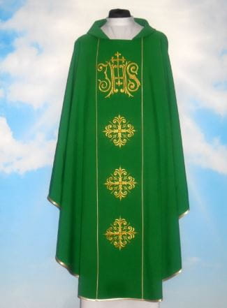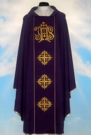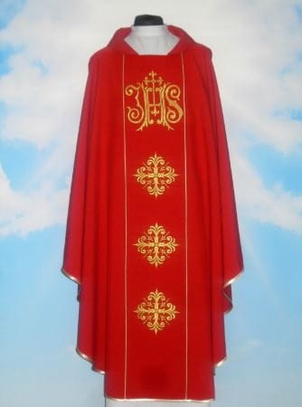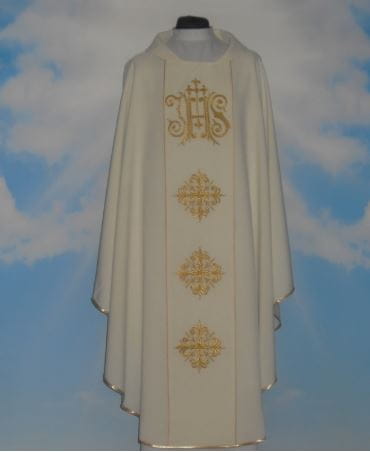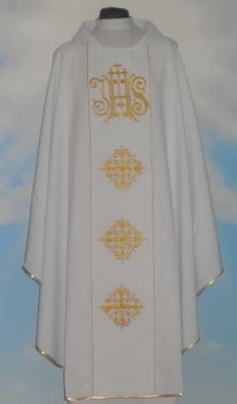 Casula ricamata. Spedita con la stola. Tessuto leggero 100% poliestere.
