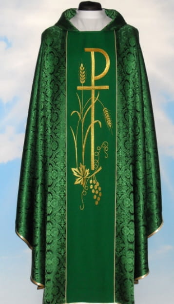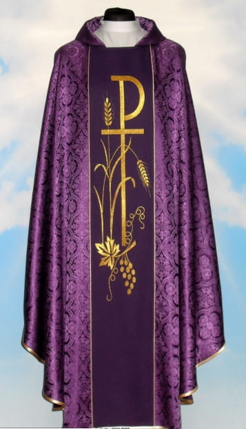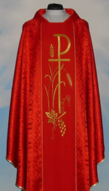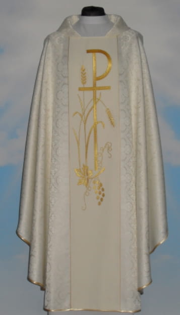 Casula ricamata. Spedita con la stola. Tessuto leggero di poliestere.