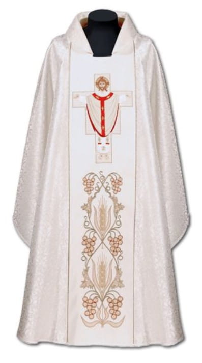 Casule ricamate con l'immagine di Gesù Grande sacerdote - tessuto di damasco. (id: 104)
