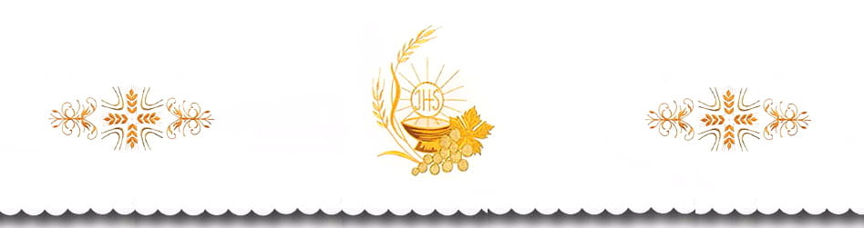Tovaglia per altare ricamata. Tessuto sintetico resistente alle macchie. Potete scegliere la larghezza da 30 à 130 cm. La lunghezza potete sceglierla dalla lista.