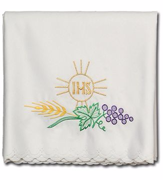 Tovaglia per altare ricamata. Tessuto sintetico resistente alle macchie. Potete scegliere la larghezza da 30 à 130 cm. La lunghezza potete sceglierla dalla lista.