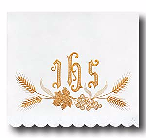 Tovaglia per altare ricamata. Tessuto sintetico resistente alle macchie. Potete scegliere la larghezza da 30 à 130 cm. La lunghezza potete sceglierla dalla lista.